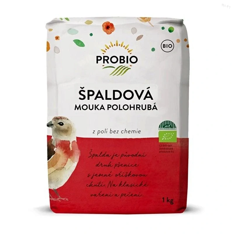 Špalda je jedna z najstarších pôvodných obilnín. Má podobné zloženie ako klasická pšenica, ale v porovnaní s ňou, je nutrične bohatšia. Obsahuje viac bielkovín, minerálnych látok, vitamínov skupiny B a jej vláknina je lepšia a ľahšie stráviteľná. Špaldová múka polohrubá je vhodná na prípravu liatych ciest, na bábovky, perníky, makovníky, a bublaniny. Je vhodná na trené a šľahané piškótové cesto. Využijete ju aj na pečenie domáceho chleba. Pre bežné pečenie odporúčame používať PROBIO múku chlebovú a celozrnnú, ktoré obsahujú veľa vlákniny.